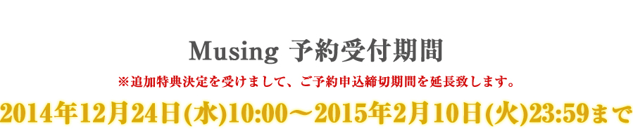 特典の納品に遅延があり、発送時期を3月31日(火)に一斉発送させて頂くこととなりました。
